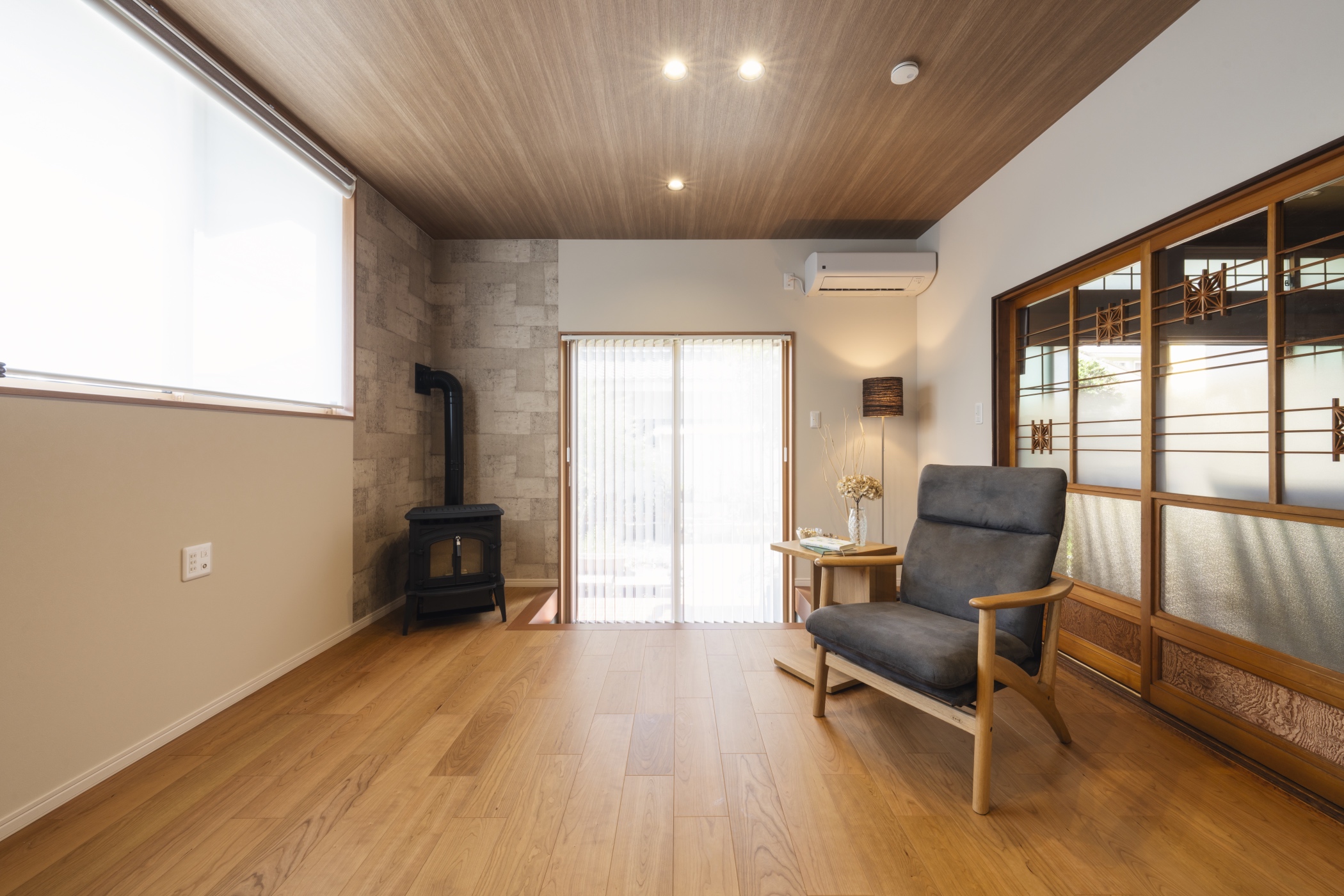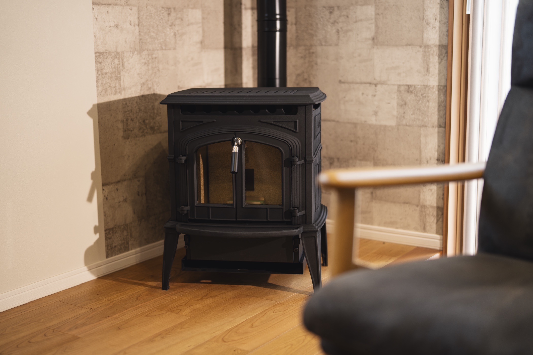 リビングのペレットストーブはお施主様のご希望でご支給いただきました。